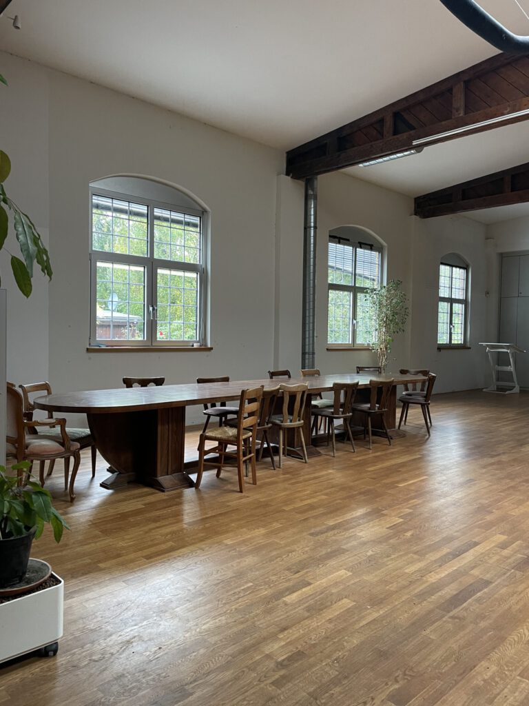 Wir freuen uns riesig über dein Interesse an den Räumen und Hallen im Netzwerk Seilerei – Offenbacher Landstraße 190. Die Räumlichkeiten können für Kunst- und Kulturbezogene Veranstaltungen, als auch für Veranstaltungen, die sich mit Nachhaltigkeit befassen gemietet werden.